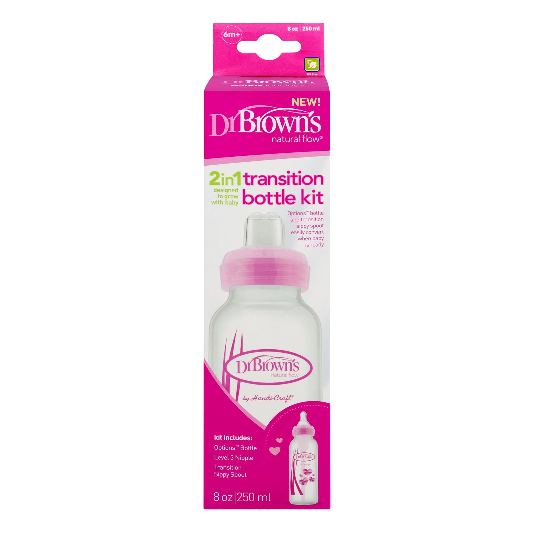 Dr Brown S Options Anti Colic Baby Bottle To Sippy Bottle Starter Kit Pink 8oz 6m Walmart Com